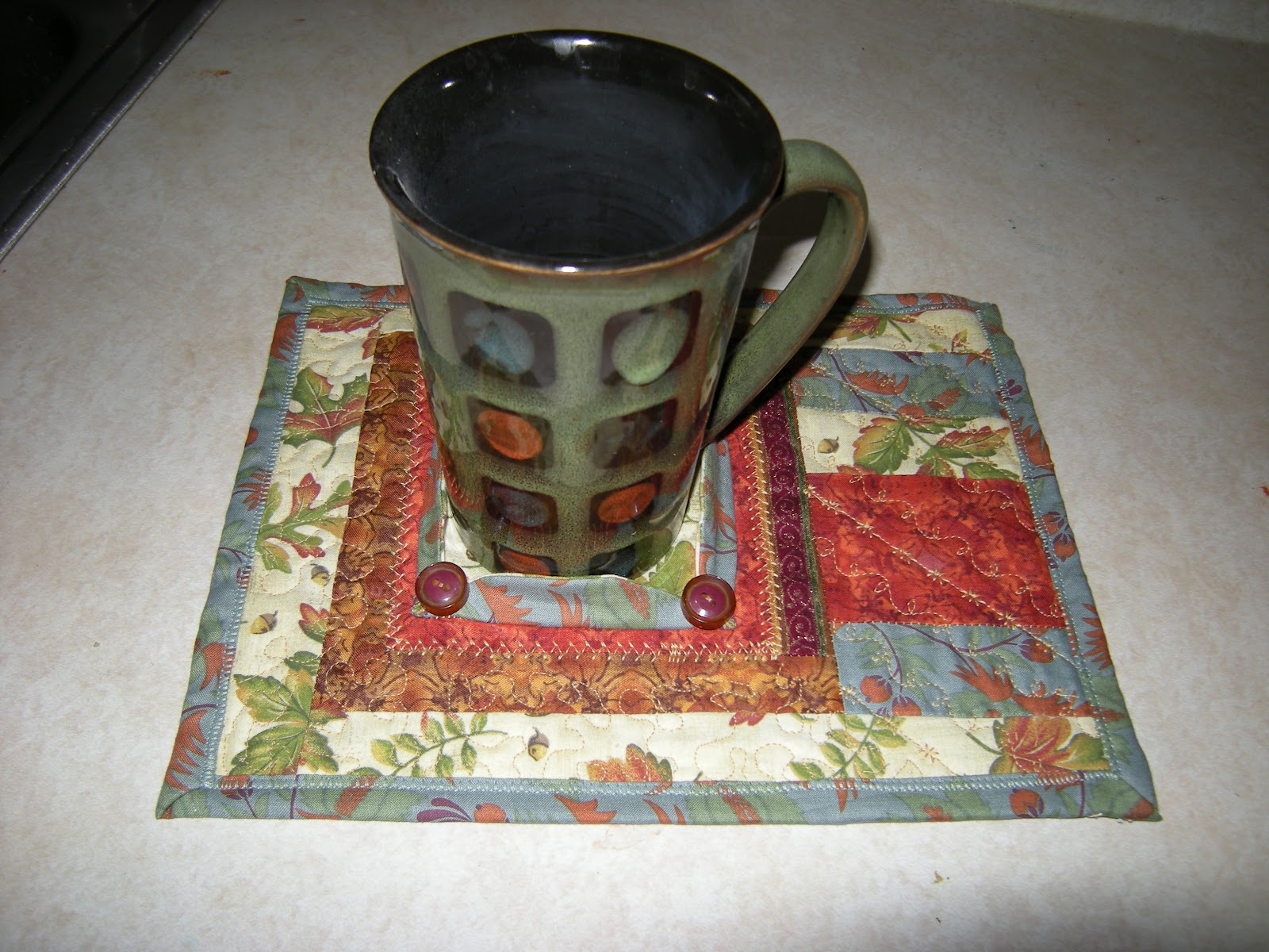 Here is a little Mug Rug I made for my swap partner in a different swap........